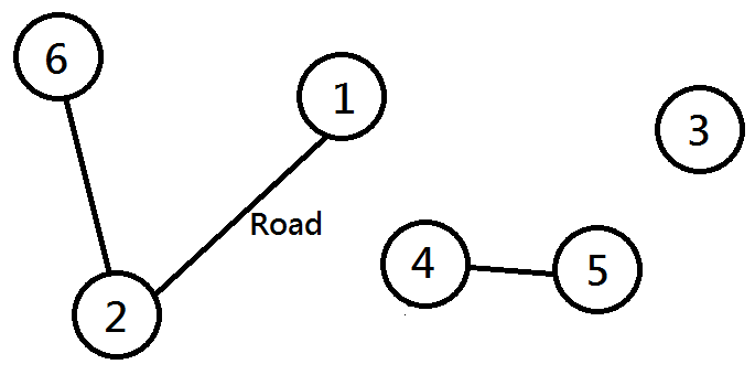 There are some cities on the map, some roads connecting some of them. And, there are only one road between two connected cities, of course, all of the roads are undirected. The figure below is an example of the problem instance. City 1, 6, 2 are connected, and 4, 5 are also connected by the other route. City 3 isn't connected with any other city. Now, HT hopes you guys to find that if there is a route from one city to another one.