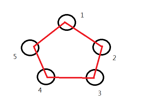 There are N different points , labeled from 1 to N. You are asked to draw a path connecting all the points to form a circle(環), and each point is allowed to be visited more than once. For example, the following 5 points can be connected into the shape of a circle in the order of 1,2,3,4,5,1 .