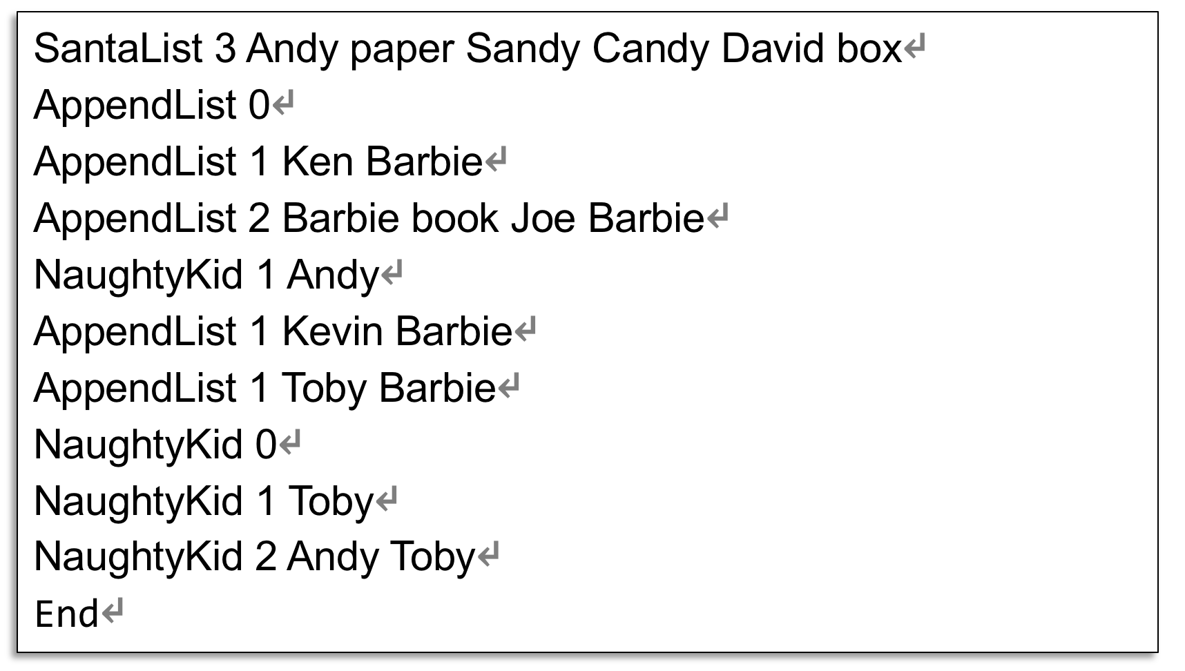 ⁍ SantaList will be initialized with the input at the first line