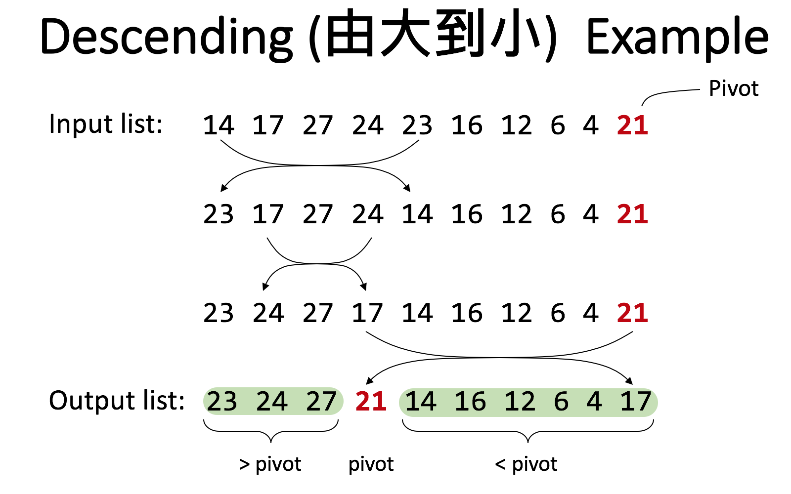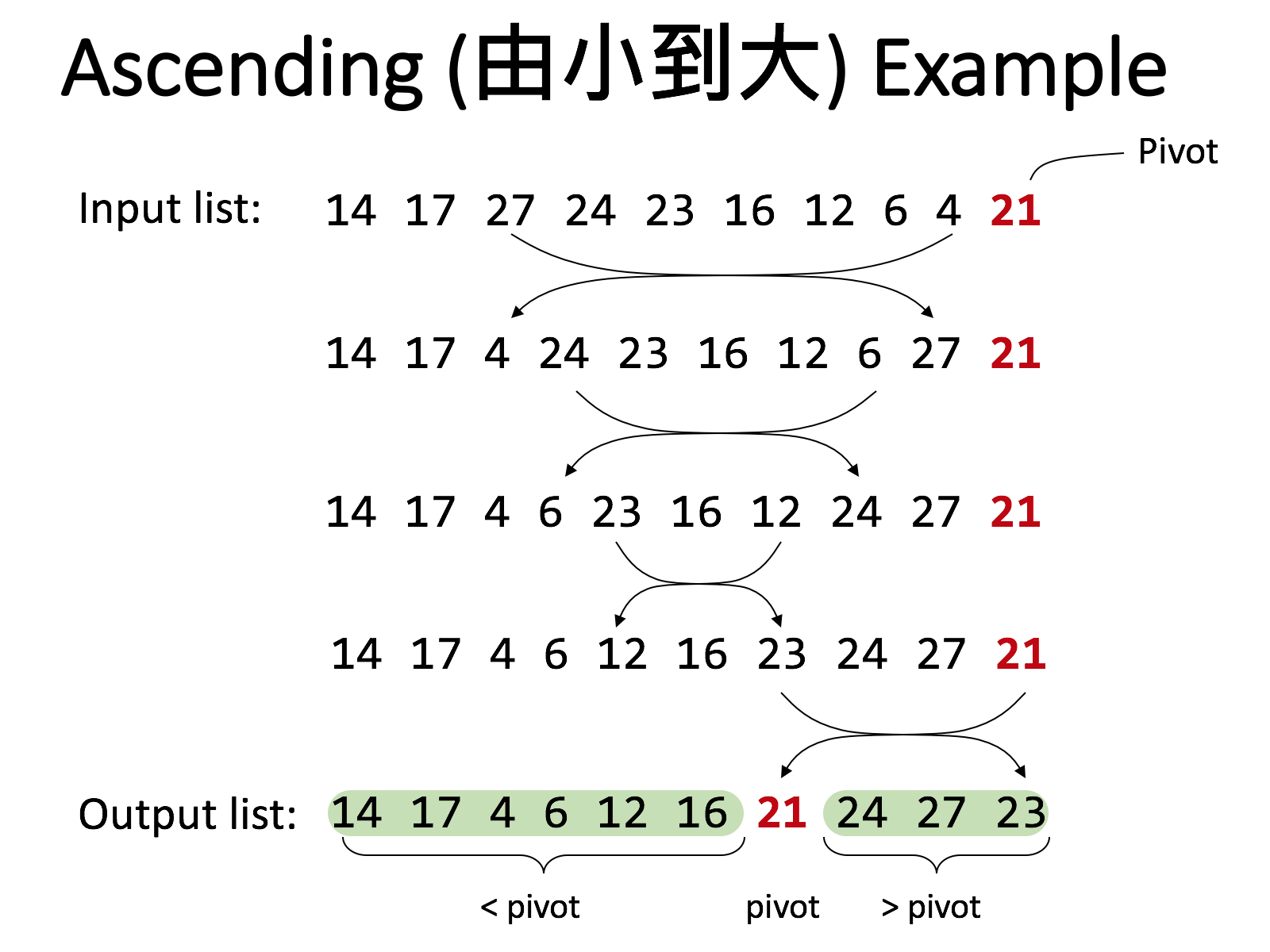 - Use the last number as the pivot
