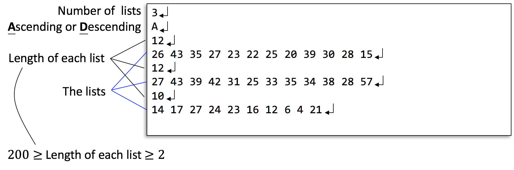 - Required order: ascending or descending