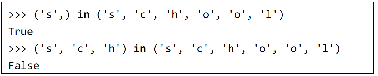 ('s', 'c', 'h') in STuple('s', 'c', 'h', 'o', 'o', 'l') = True