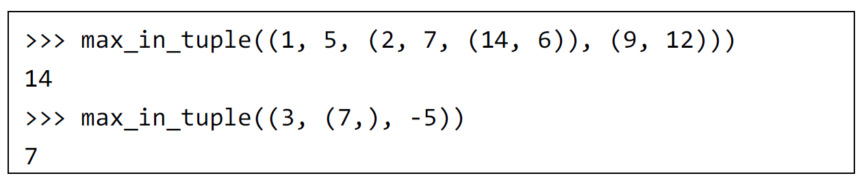 print(f'max_in_tuple({testcase}) = {max_in_tuple(testcase)}')