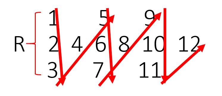A sequence from 1 to N is written in a zigzag pattern on a given number R of rows .