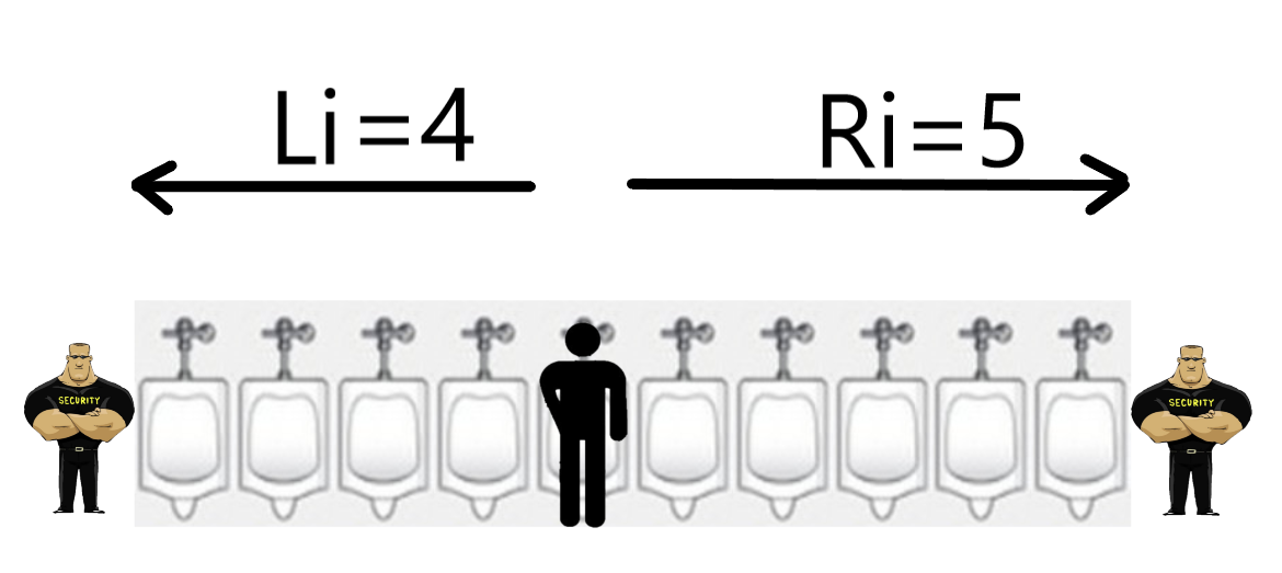 - Considering the i-th urinal (index increases from left to right), define Li and Ri as