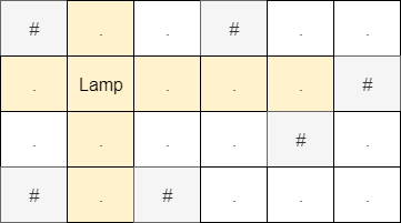 Find the maximum possible number of squares lighted by the lamp.
