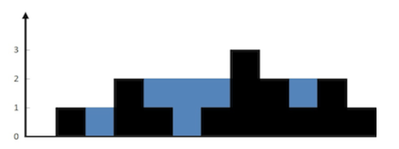 The above elevation map can be represented by array [0,1,0,2,1,0,1,3,2,1,2,1]. In this case, 6 unit of water is the total volume of Reservoir (水庫)