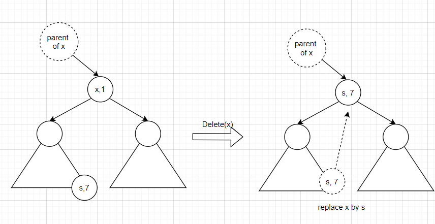 - Node x has 2 children: replace x by the Node with the largest key among the keys less than x.
