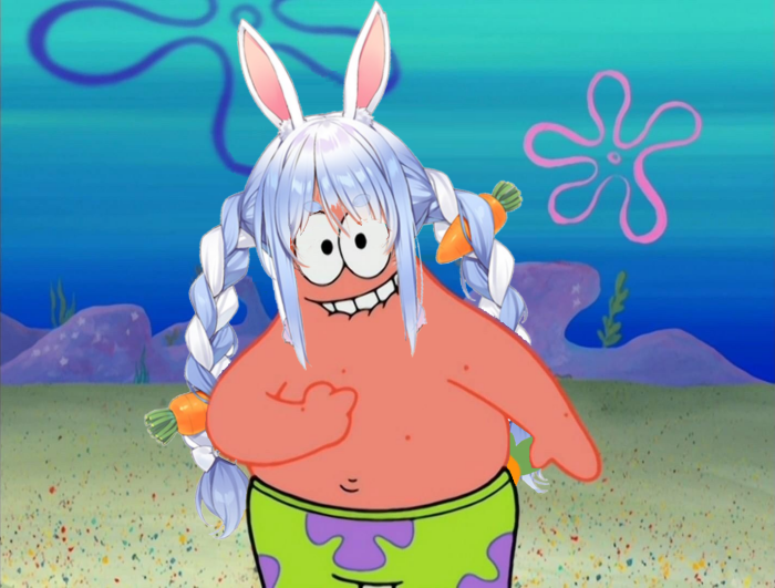Of course they can't pay in neither bubble-money nor in rock-money. So the cashier is so mad that he calls the police to catch them. Spongebob and Patrick feel scared and they run away immediately(please don’t imitate them). To prevent from being caught, Patrick decide to cosplay an usagi.