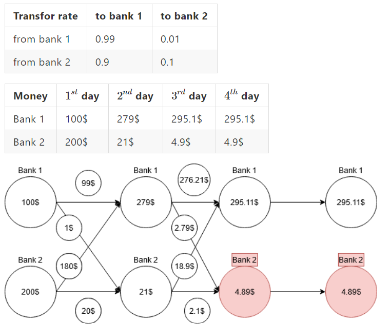 The transfor rate and the money of each bank are shown in the following tables.