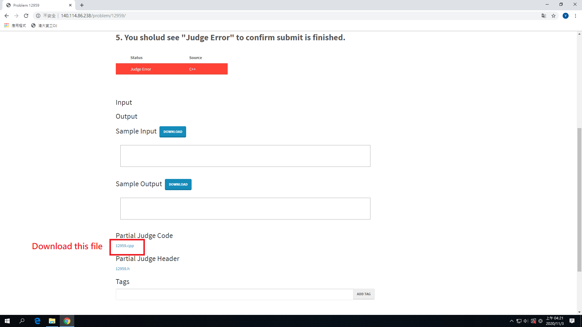 5. You sholud see "Judge Error" to confirm submit is finished.