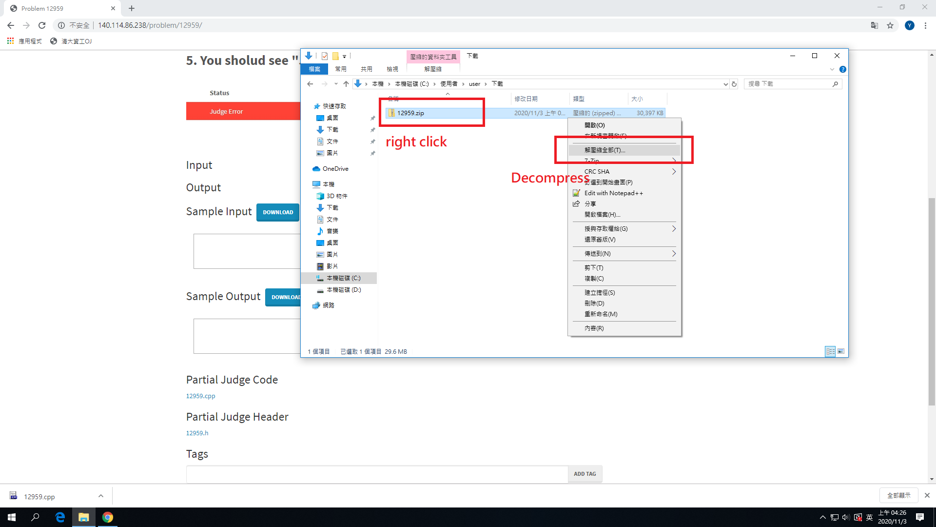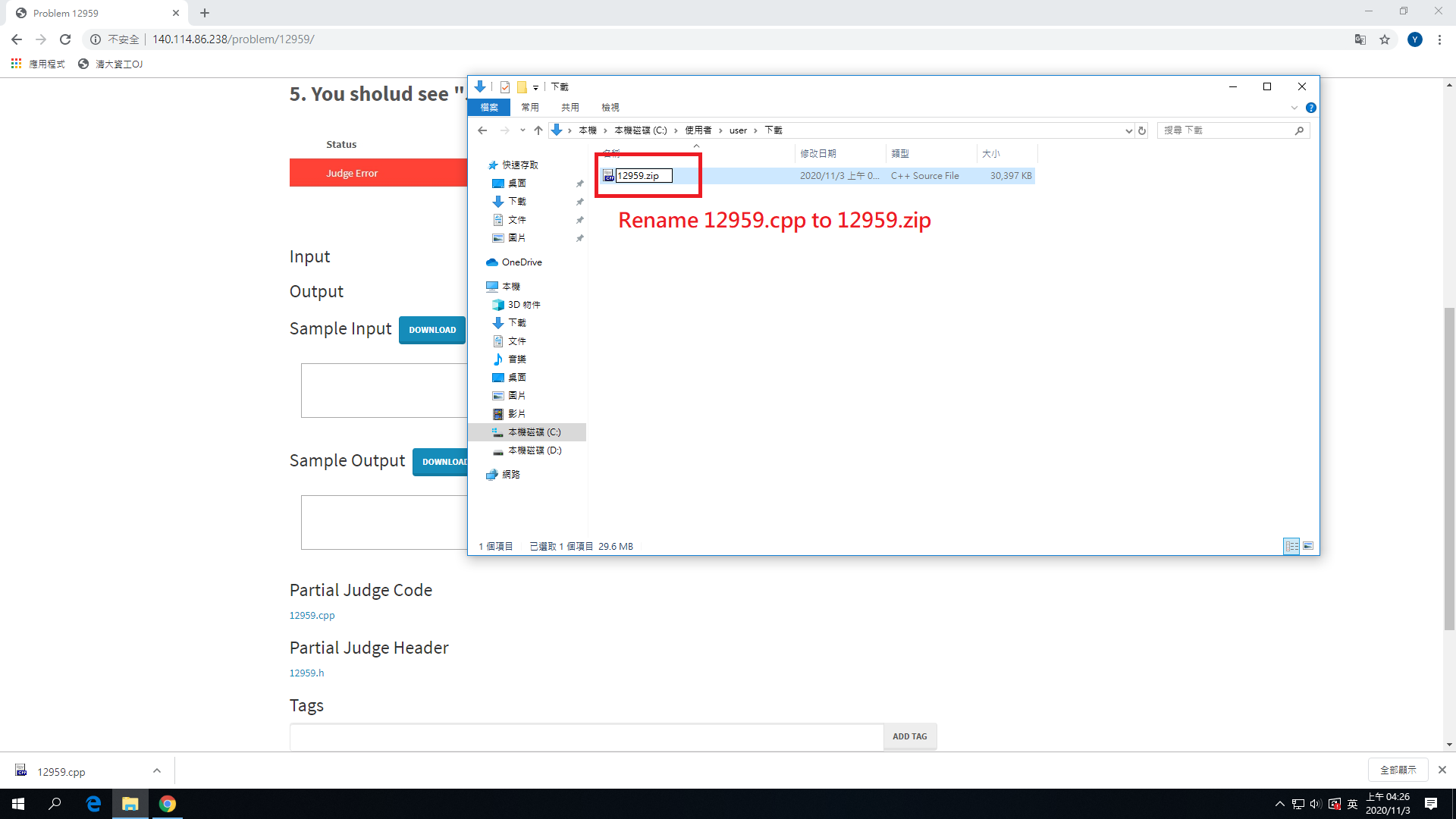 2. Rename 12959.cpp to 12959.zip then decompress.