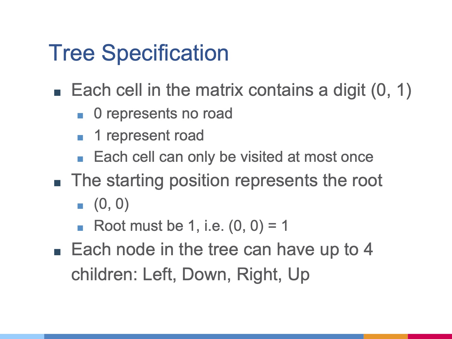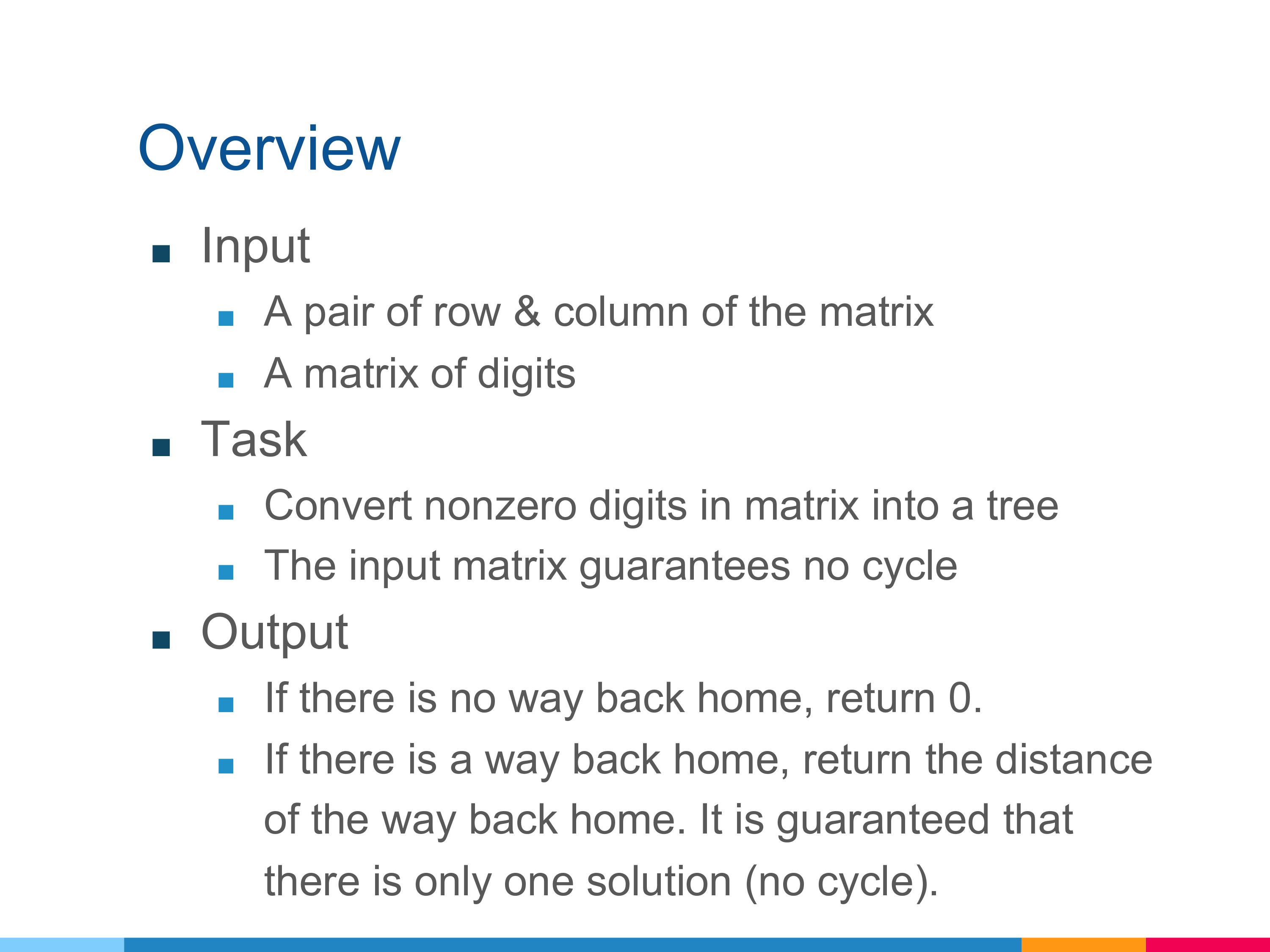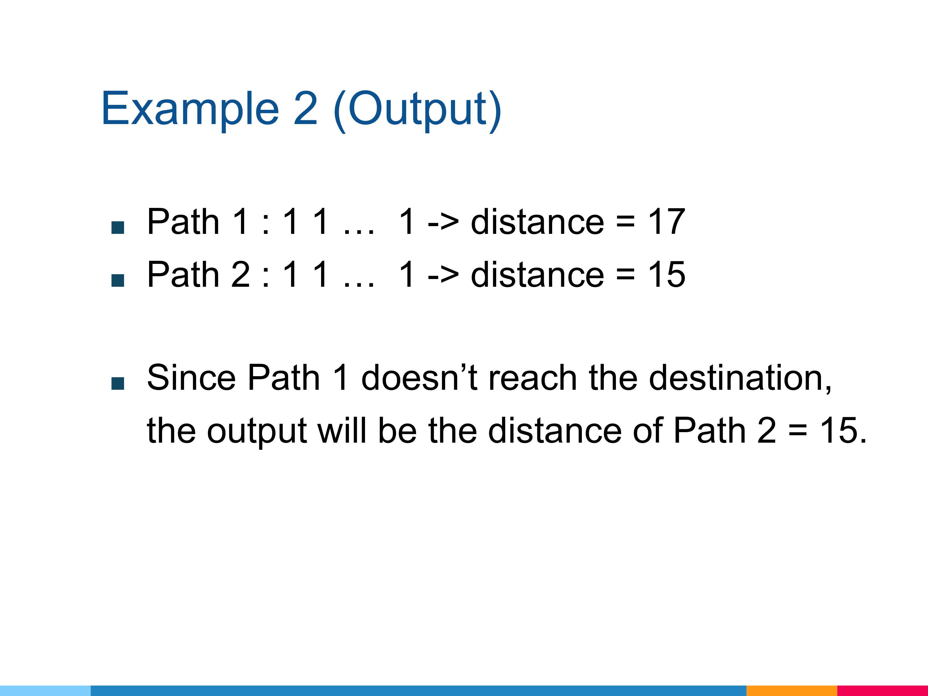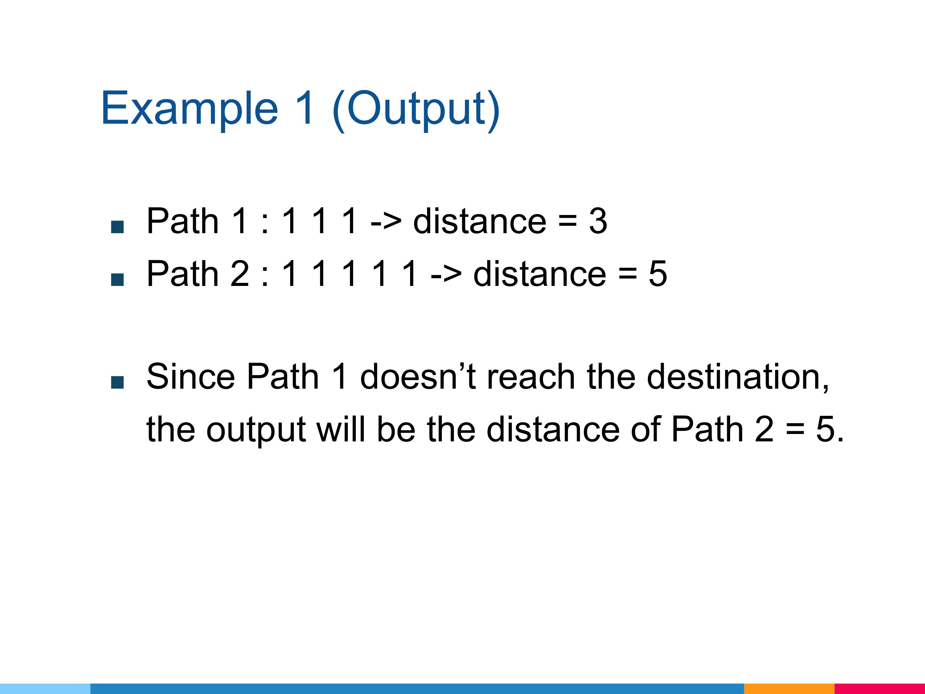 If there is a path to the destination, return the distance of the path from root to destination. It is guaranteed that there is only one solution for each testcase.