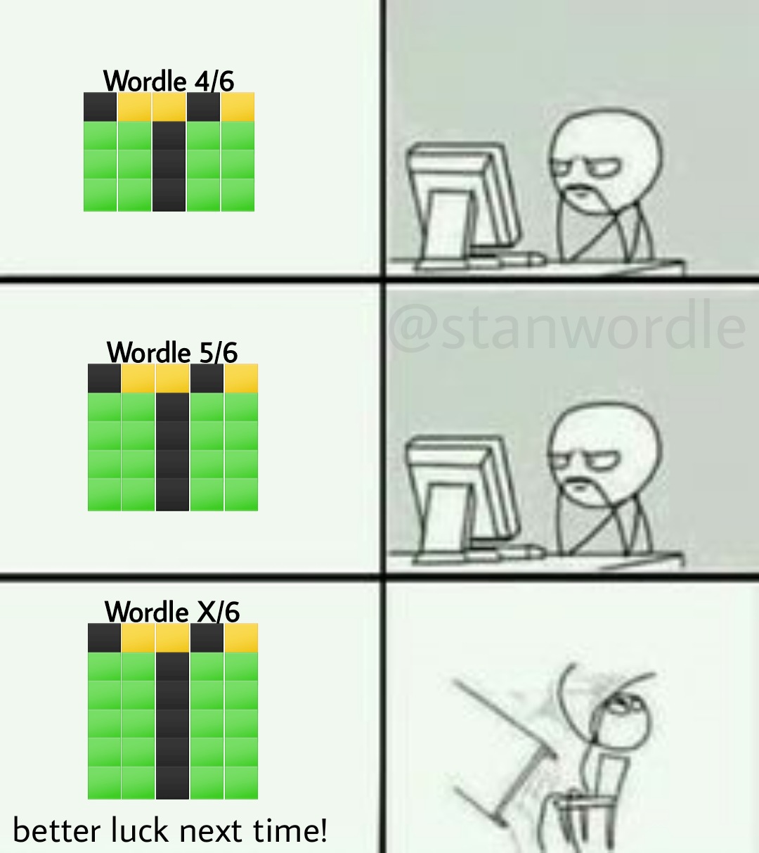 G(Green): the letter matches the answer at the same position.Y(Yellow): the letter occurs in the answer but in a different position (respecting letter counts).B(Black): the letter does not occur in the answer in any unmatched position.