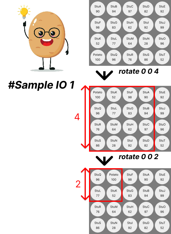 means that Potato wants to rotate students seats in a matrix starting from top left at(i, j)with a width ofwidthclockwise