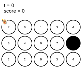- Potato picks up the treasure, and thus the score increases by the number where Potato's standing, and after that, the number is subtracted by