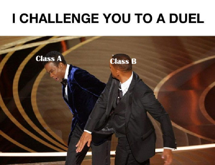 This year NTHU's I2P class is divided into two classes (Class A and Class B). To celebrate our first midterm the Domo decided to host a tournament between the 2 classes. Each class chooses one champion to represent them in a turn-based duel.