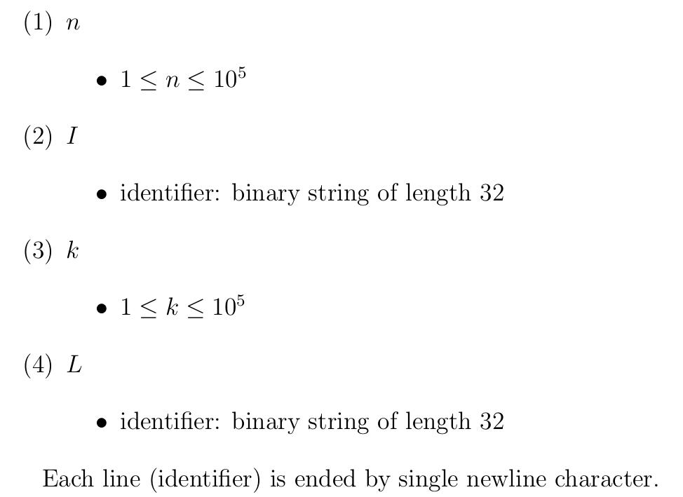 5 00000000000000000000000000000001 00000000000000000000000000000011 00000000000000000000000000000101 00000000000000000000000000000010 00000000000000000000000000000100 5 00000000000000000000000000000000 00000000000000000000000000000001 00000000000000000000000000000101 00000000000000000000000000000010 00000000000000000000000000001000
