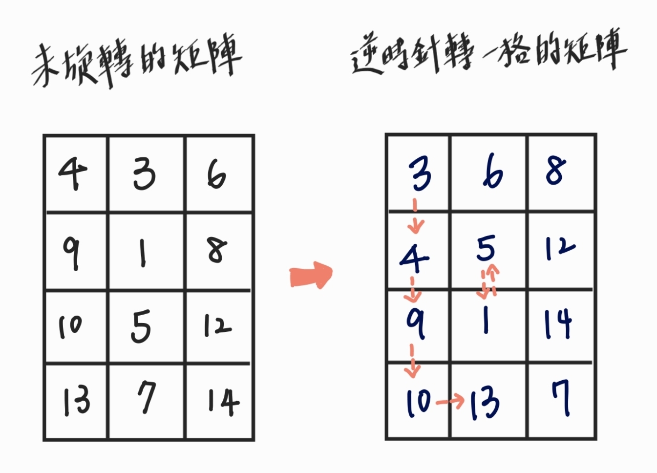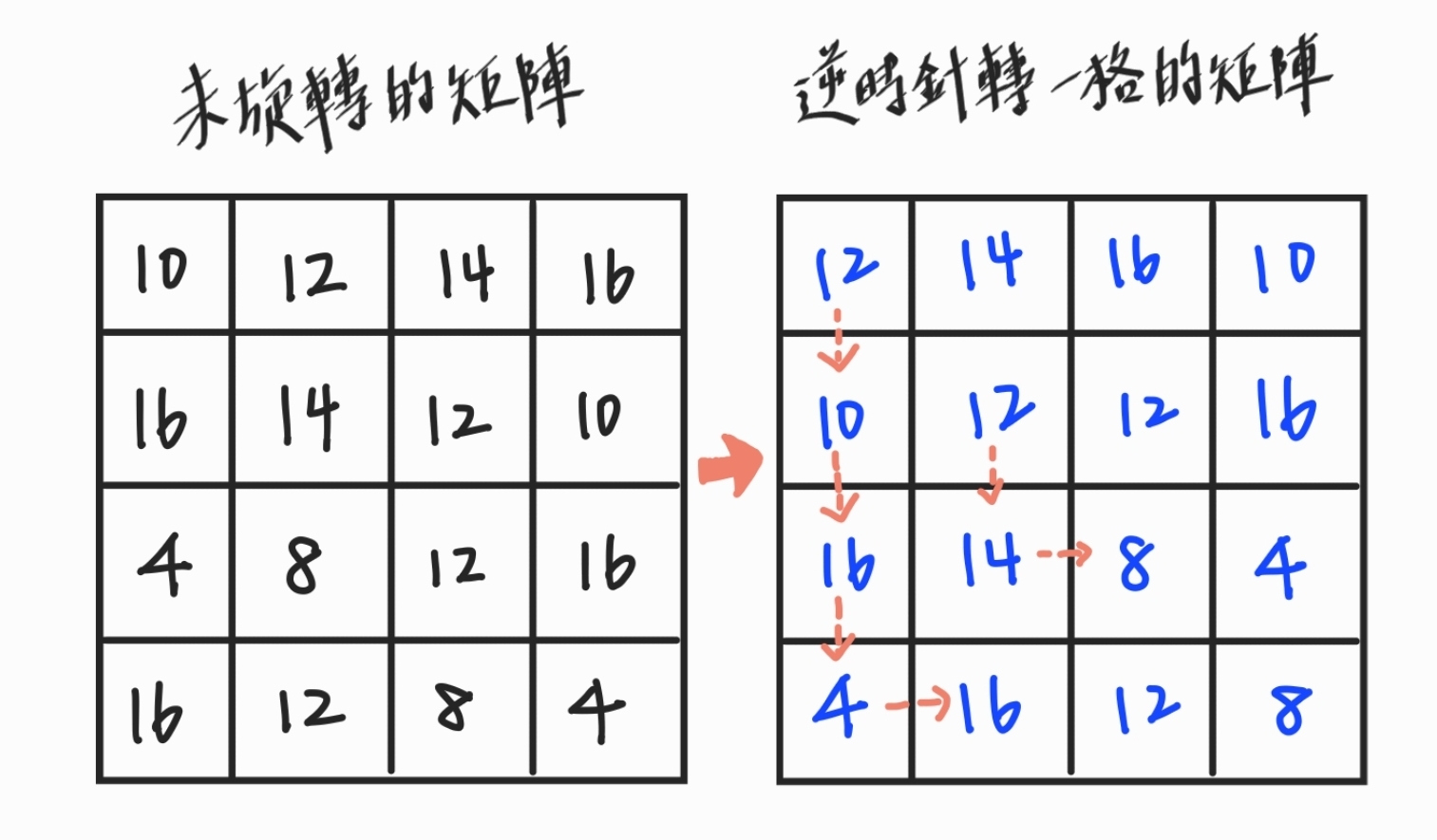 步驟二:將壓縮後的矩陣整體進行「逆時針旋轉一格」